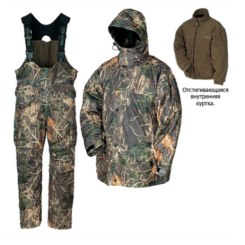 Костюм, который подходит как рыболовам, так и охотникам, так как изготовлен из мягкого не шуршащего материала.-Мембранная ткань. Предназначен для эксплуатации при температуре до- 20°C. Особенность – отстегивающаяся внутренняя куртка, которую можно носить отдельно.