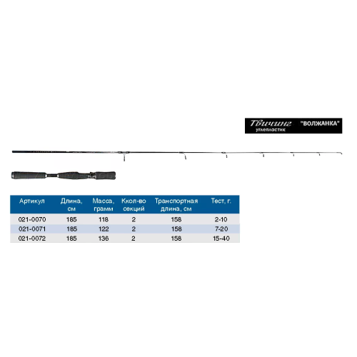 Серия специализированных удилищ для ловли рывковой проводкой различными приманками. Спиннинги предназначены для использования с безынерционной катушкой. Конструкция ВОЛЖАНКИ ТВИЧИНГ - неразъемный бланк и съемная рукоять обеспечивает ей максимальную надежность. Стоит заметить, что вся линейка удилищ «В.Т.» имеет длину 185 см, что для данного вида ловли является несомненным плюсом. К достоинствам этого удилища можно отнести материал бланка, сделанный из графита IM-7, удобную дуплоновая рукоятка, более долговечную и неприхотливую, нежели классическая пробка, и, конечно, отличную цену!
