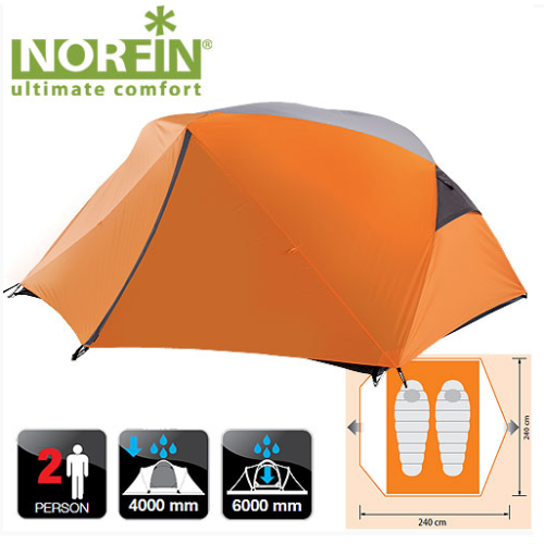 Двухслойная палатка с комфортным внутренним пространством. Подходит для путешествий вдвоем. Очень проста в эксплуатации. Имеет 2 входа, продублированных антимоскитной сеткой, два удобных тамбура, карман для мелочей, крючок для подвески фонаря. Все швы герметичны за счет термоусадочной водонепроницаемой ленты. Есть два вентиляционных окна с ветровыми клапанами. Веревки оттяжек со светоотражающей нитью. Петли для скатанного входа, специальный чехол-стяжка для фиксации сложенной веревки оттяжки. Площадь крепления нижних оттяжек усилена дополнительной вставкой.