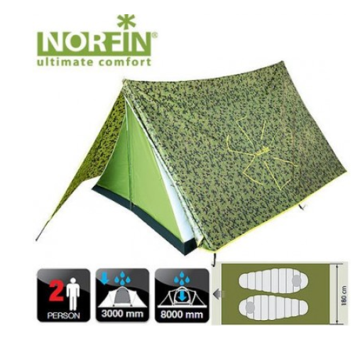 Палатка NORFIN Tuna 2 – Современный дизайн классической, проверенной времем двускатной палатки. Легкая, компактная, простая в сборке. Идеальна для рыболовов и охотников.